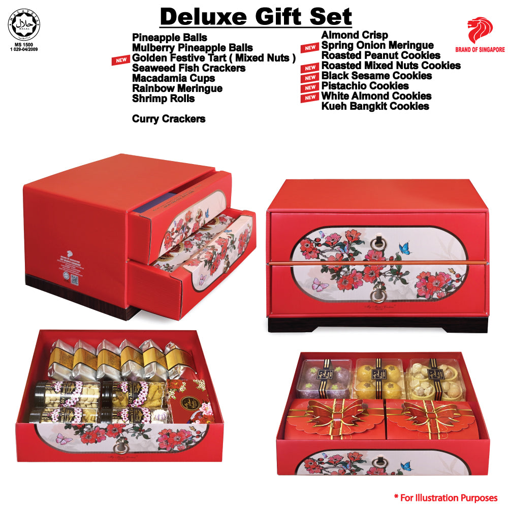 The Deluxe Gift Set is curated for those who appreciate the finer things — a beautifully presented collection of our best-loved treats, crafted to impress. Thoughtfully packed and elegantly finished, it’s the perfect way to share joy, celebrate special moments, or indulge someone deserving of something truly exceptional.