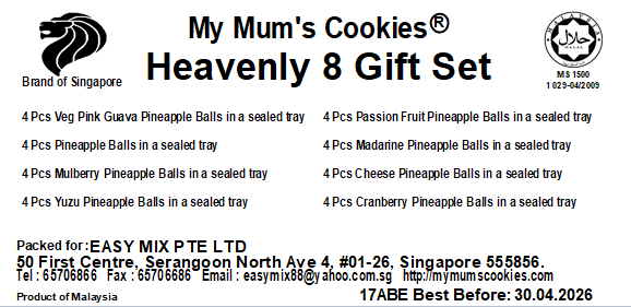 Pineapple delicacies is a must-have during Chinese New Year! Be it open-faced tarts, ball-shaped or in cups, we have it all here at My Mum's Cookies!