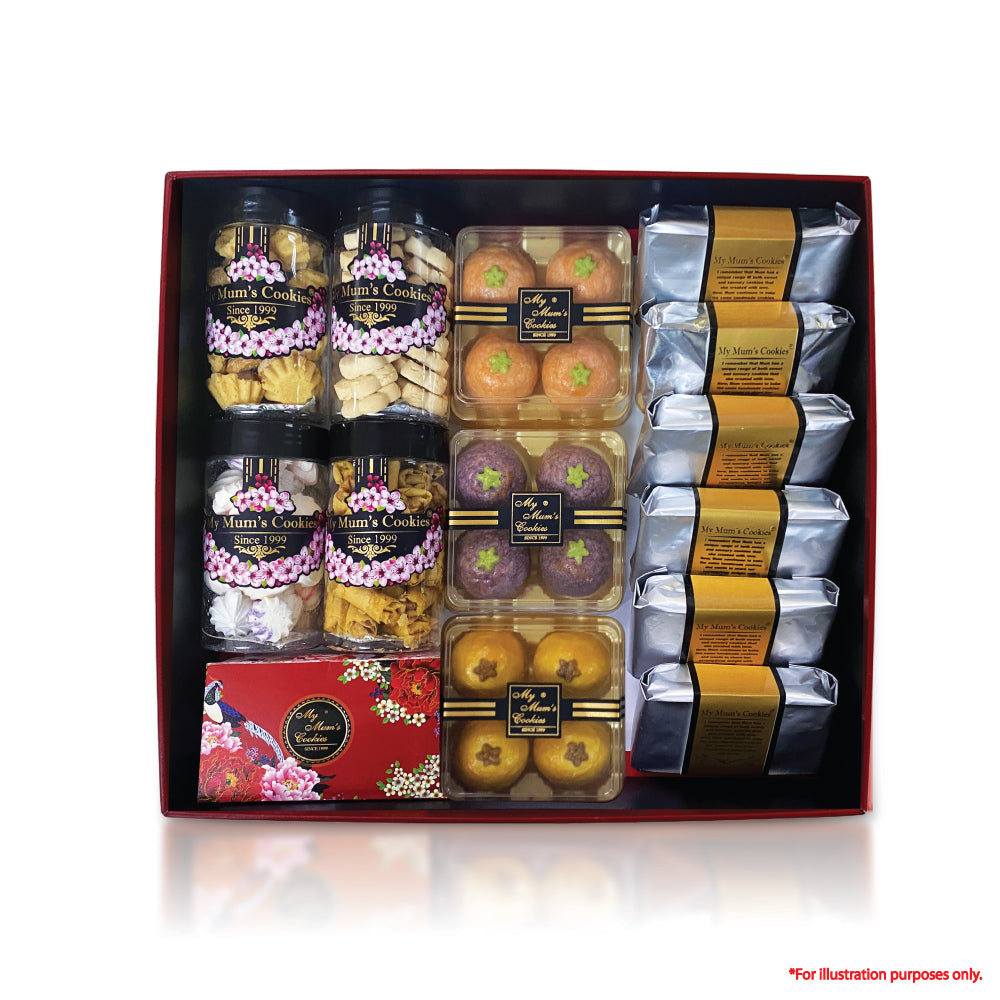 It consists of 14 types of all-time favourite Chinese New Year cookies:–