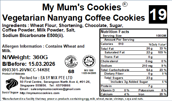 COFFEE COOKIES (Vegetarian) 咖啡饼(素)58pcs+-420g+- - My Mum's Cookies